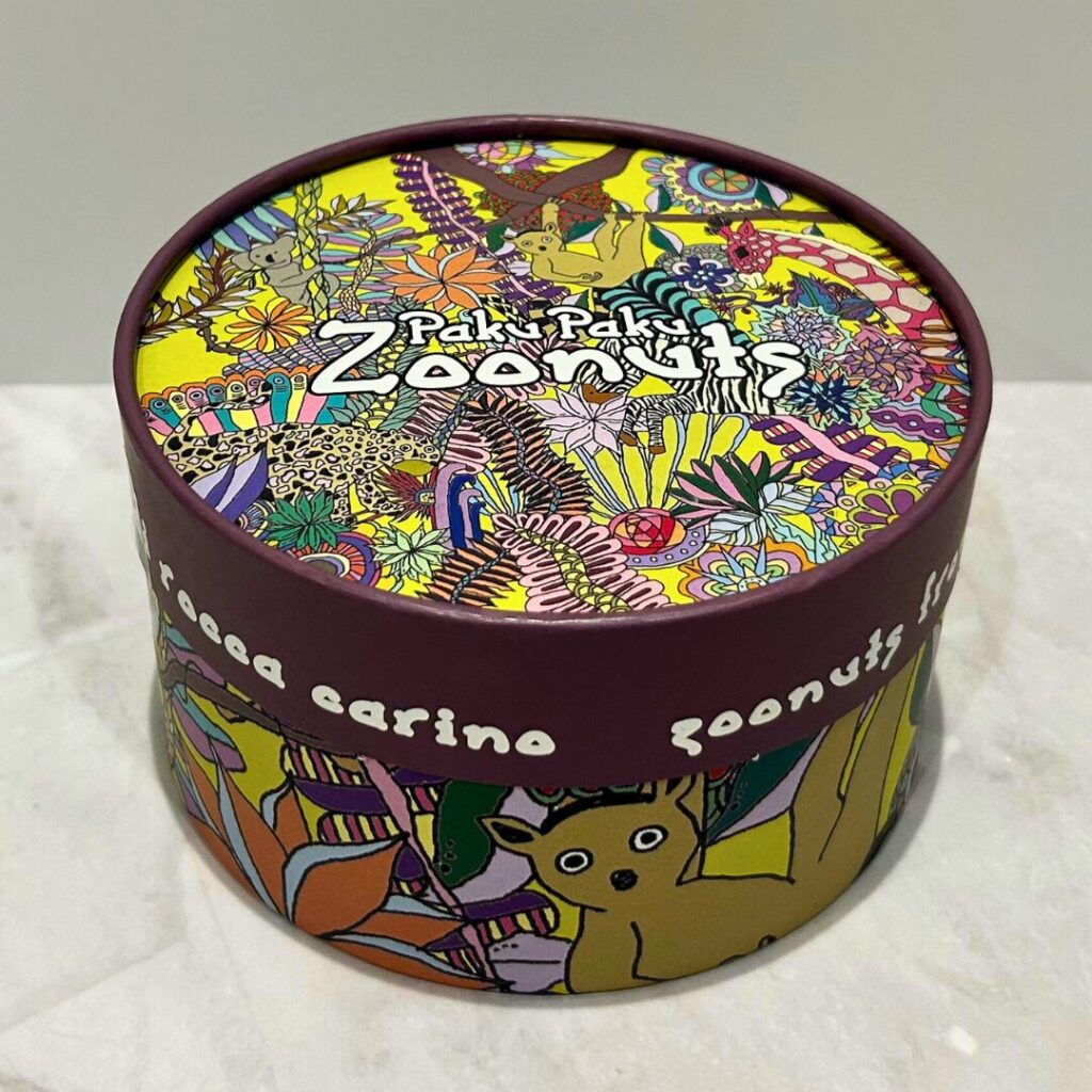 「Paku Paku Zoonuts(パクパクズーナッツ)」は、動物たちがぎゅっと詰まったようなポップなデザインで、見ているだけでワクワクします。