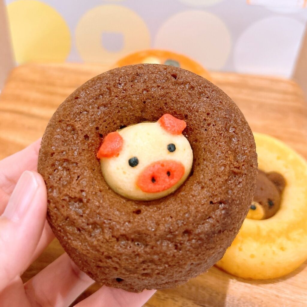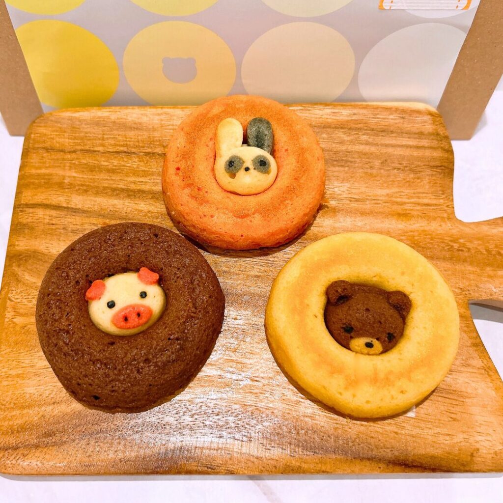 ドーナツの穴からネコやクマ、ウサギたちが顔を出す、なんともかわいいデザイン。見た目に癒されるだけじゃなく、やさしい甘さでほっとできる味わいです。