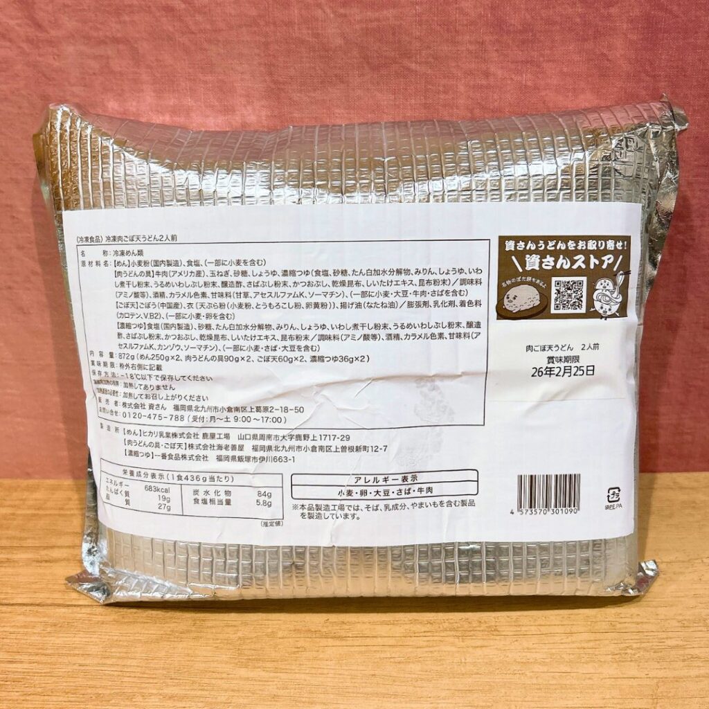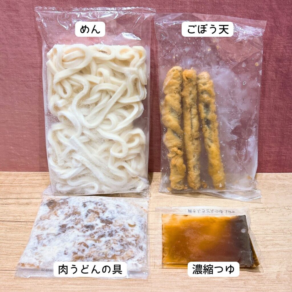 今回私が購入したのは、「肉ごぼう天うどん」の冷凍うどんセット。