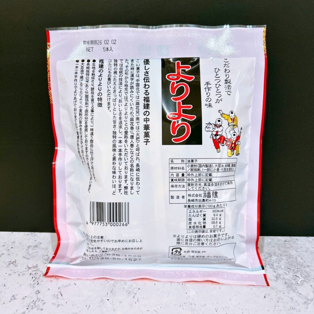 正式名称は「麻花(マファール)」という中華菓子ですが、長崎ではすっかり「よりより」の名前で定着しています。