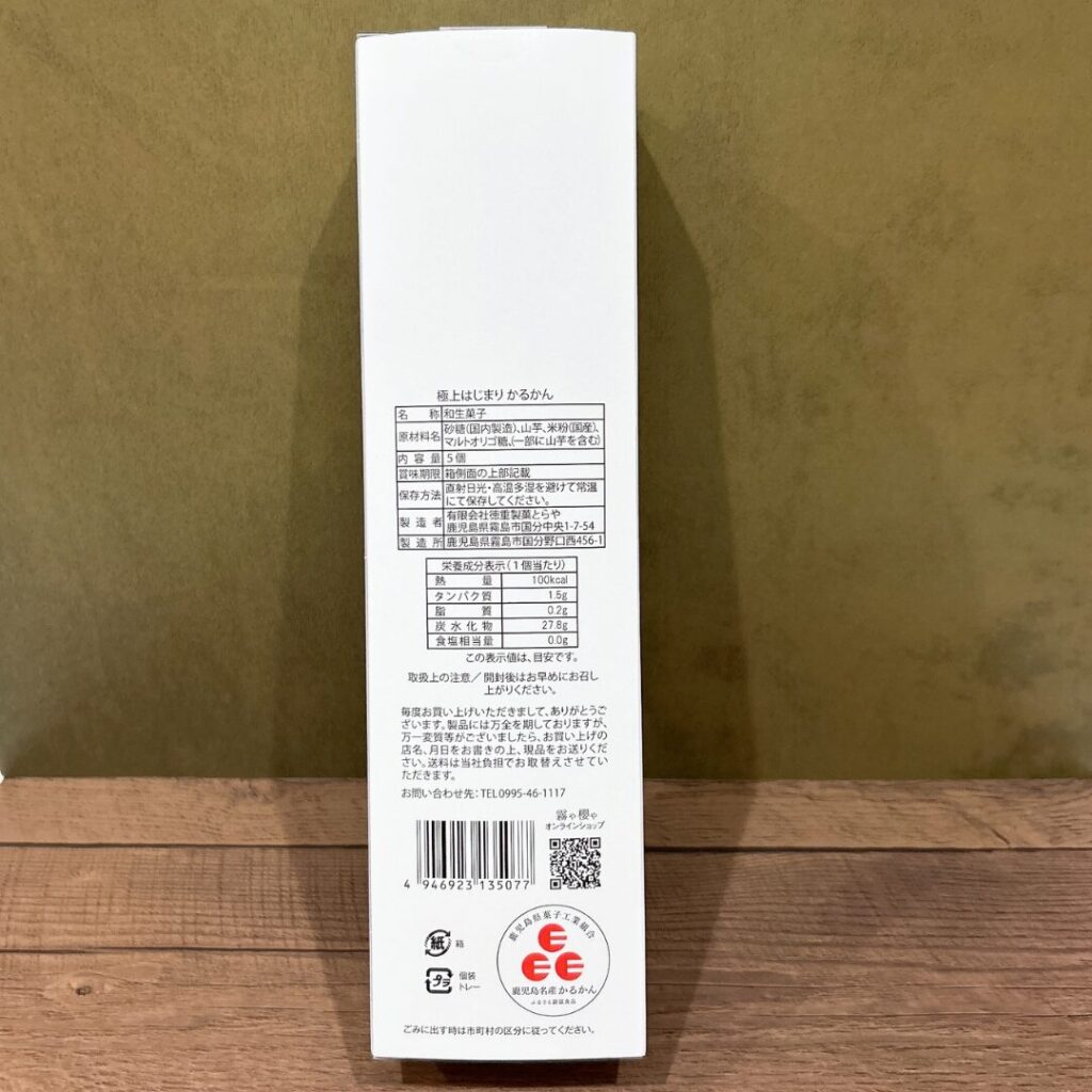 「極上」の名にふさわしく、通常のかるかんよりもやや高めの価格設定で、5個入り1,350円〜。