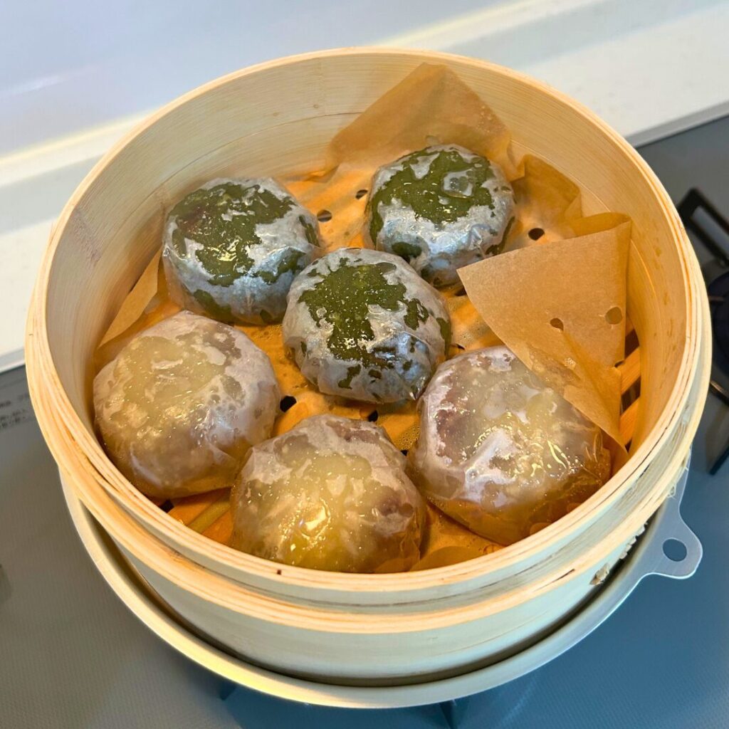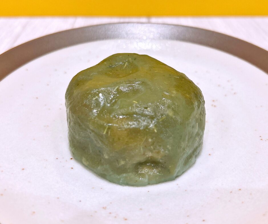 冷凍のままでも、よもぎの緑がしっかりわかる生地。