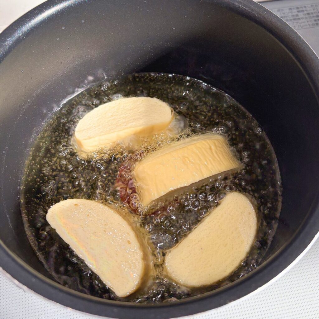 そっと入れて、約3分揚げます。