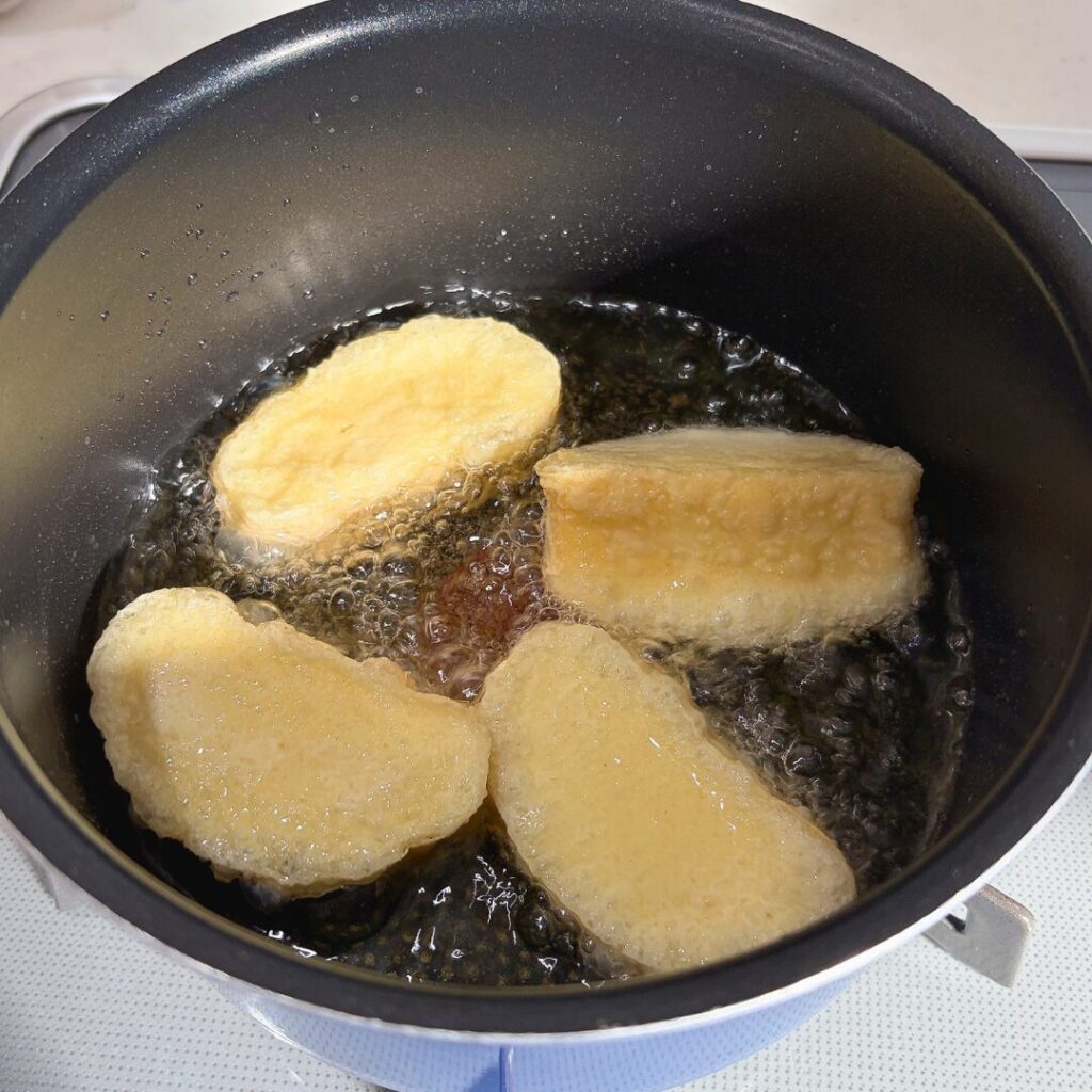 湯葉揚げがしっかり浸かるくらいの油を用意し、170℃まで加熱。